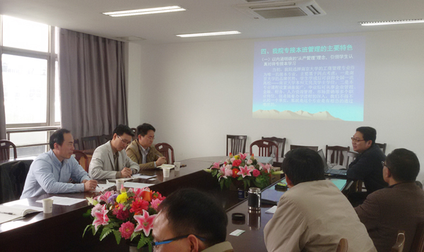 该校管理学院俞院长主持交流会,副院长任鸿升作了经验介绍,双方就专业方向设置与企业人才需求、开设课程、课程的通过率、招生的宣传组织、学生的管理及专接本系统运行等方面进行了深入探讨。
